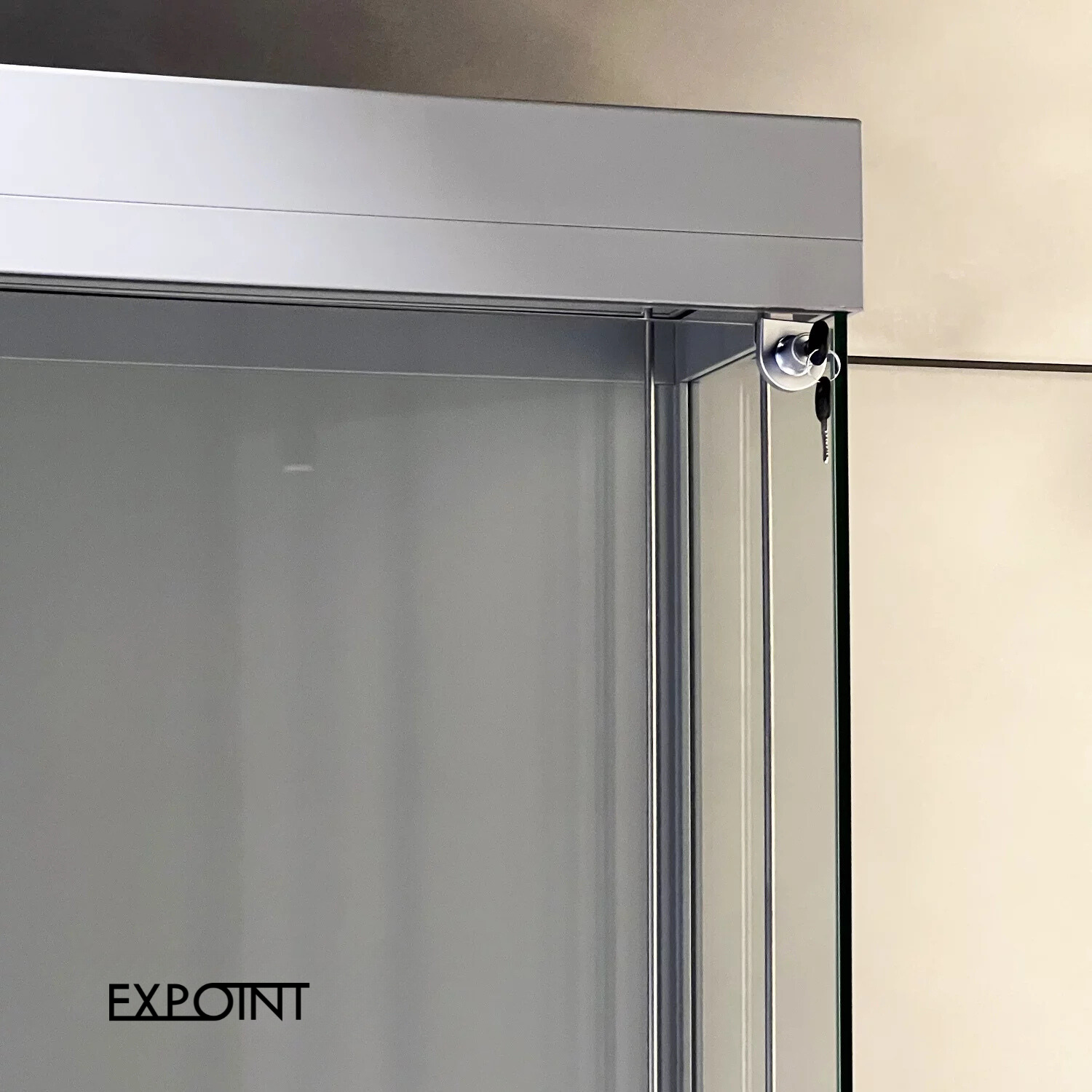 - Türen aus 8 mm starkem Hartglas, an stabilen Scharnieren befestigt