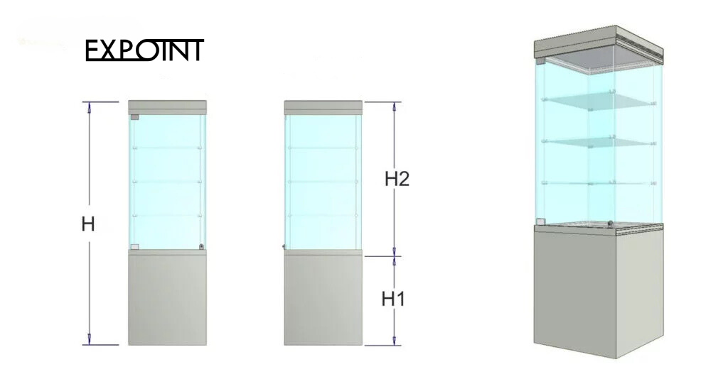 - Die Vitrine wird in der Regel mit Einlegeböden hergestellt – deren Anzahl wird an die Bedürfnisse angepasst.