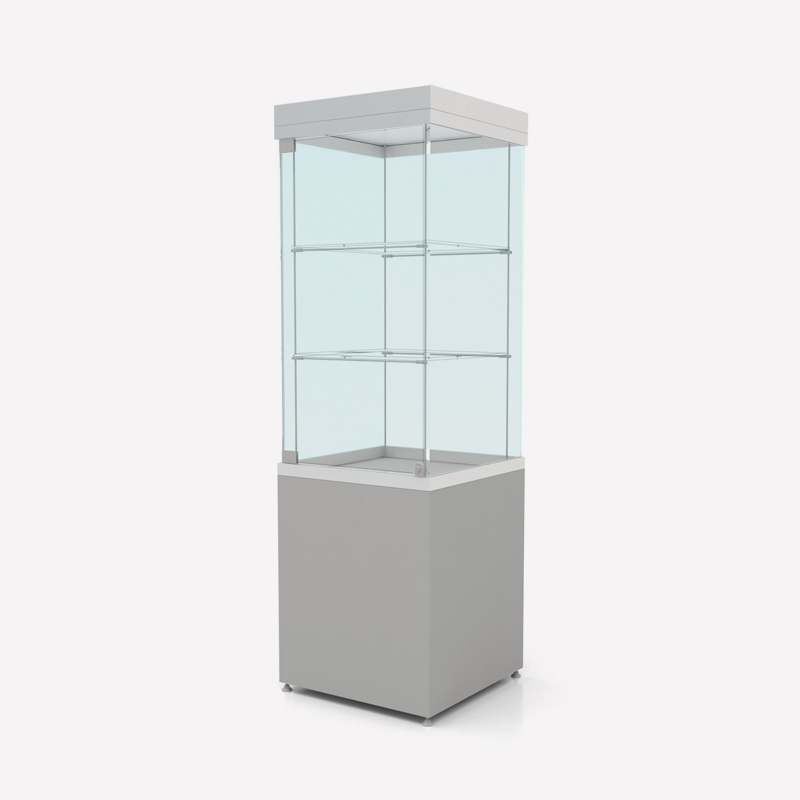 Ausstellungsvitrine mit hohem Sockel und vollständig verglast